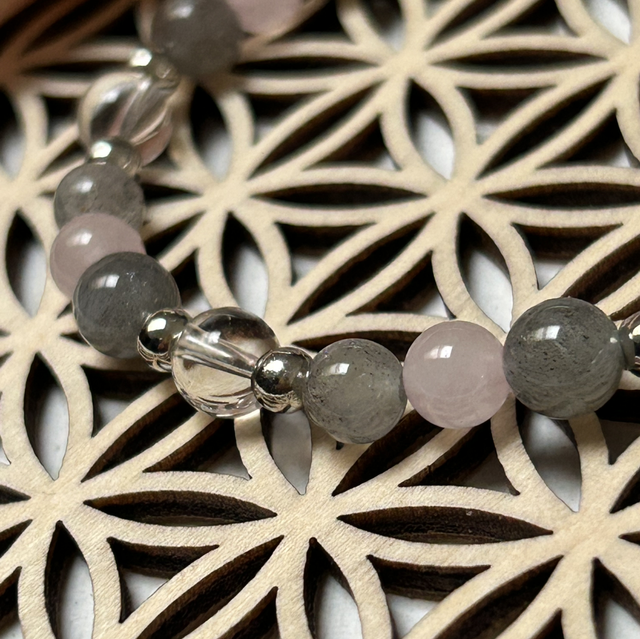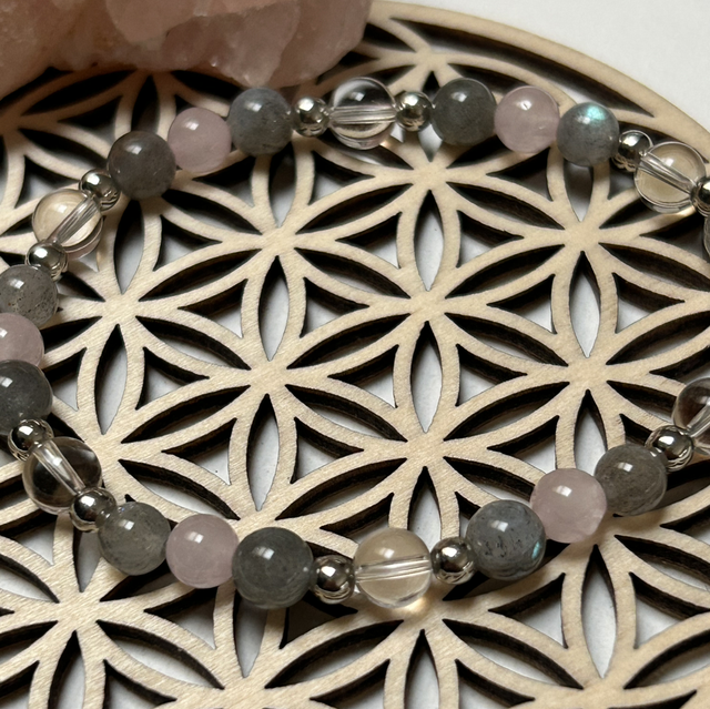 apporte protection grâce a la labradorite et amour grâce au quartz rose