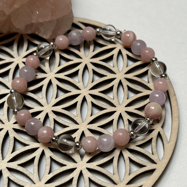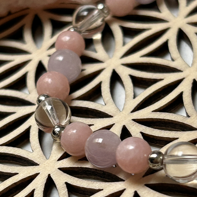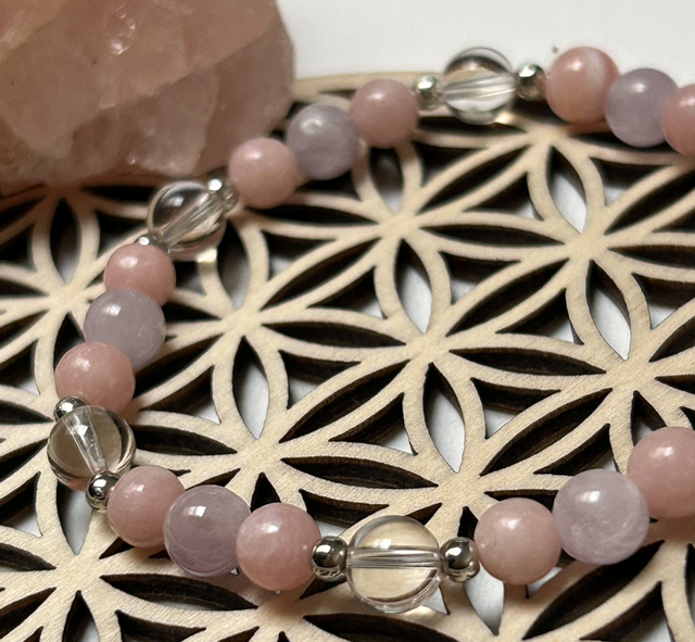 Bracelet de 16 cm avec kunzite opale rose et cristal de roche