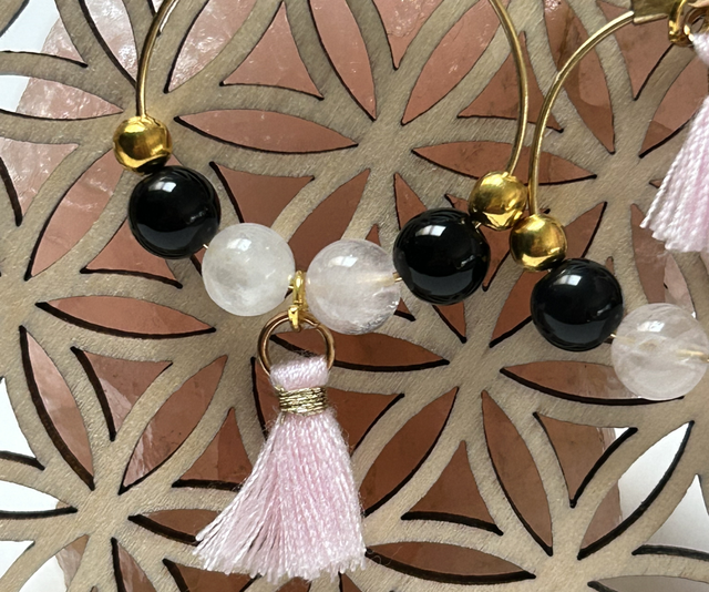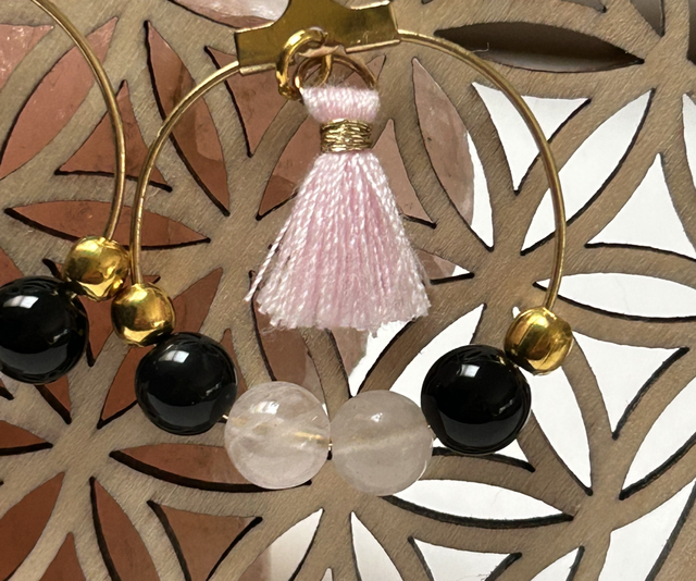 Boucle d’oreille en acier inoxydable avec pierre de 6 mm d obsidienne et quartz rose